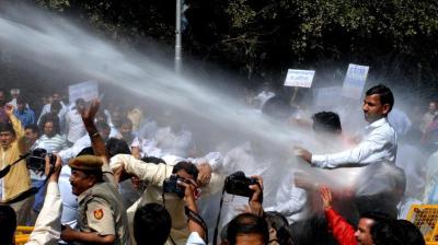 कलेक्ट्रेट घेराव से पहले रोके गए प्रदर्शनकारी, पानी की बौछार से तितर-बितर