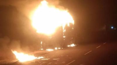 सीहोर में वेयरहाउस के ट्रक में आग, कई लोगों की जान बची फायर ब्रिगेड की तत्परता से