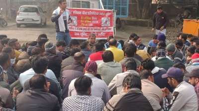 दैनिक वेतनभोगी कर्मचारियों ने मोहन सेन के कार्यालय के सामने जोरदार प्रदर्शन किया