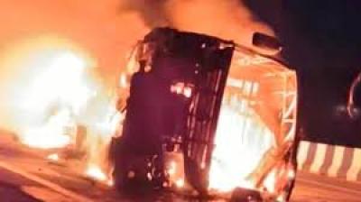 मैहर| जिले में नेशनल हाईवे-30 पर सोमवार को उस समय अफरा-तफरी मच गई, जब एक चलती स्लीपर बस अचानक आग का गोला बन गई। बस में सवार यात्रियों में हड़कंप...