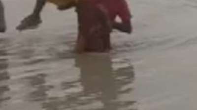 पुलिया पर उमड़ा तेज बहाव, बुजुर्ग दंपति और बेटा बाल-बाल बचे