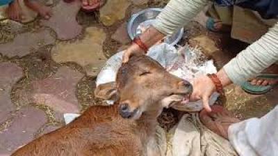 यूपी के गांव में अनोखा मामला, दो मुंह-पांच पैर वाली बछिया को देखने लगी लोगों की भीड़