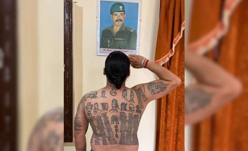 देशभक्ति की अनोखी मिसाल: टैटूमैन ने पूरे शरीर पर गुदवाए शहीदों के नाम