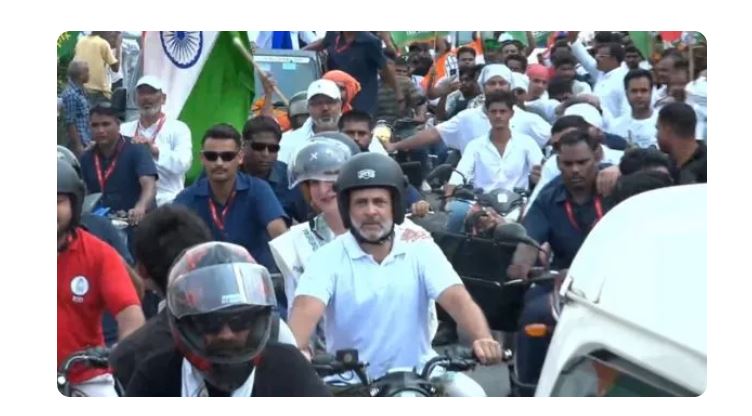 यात्रा के दौरान राहुल ने थामी बाइक की कमान, प्रियंका बनीं साथी