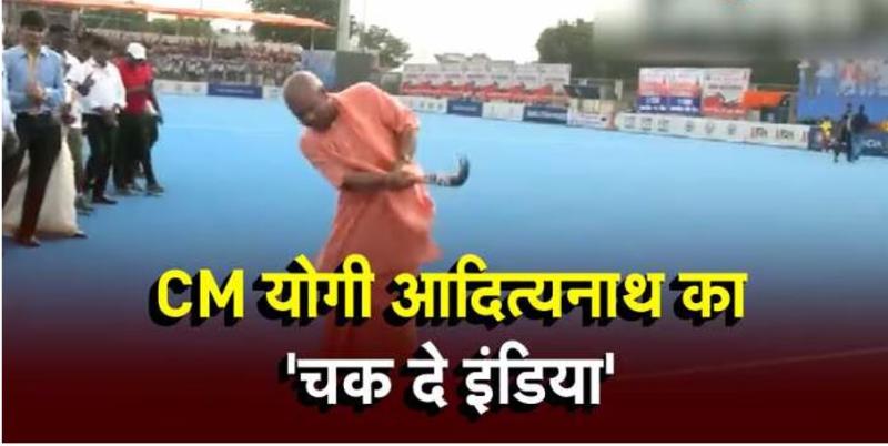 हॉकी मैदान में सीएम योगी का नया अंदाज, खिलाड़ियों को प्रोत्साहित करने के लिए खुद मैदान पर उतरे और शॉट लगाया