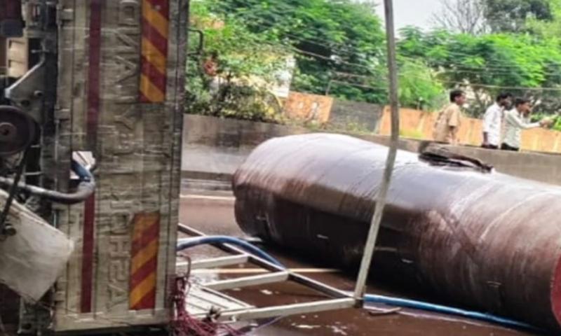 रायपुर-नागपुर हाईवे पर टैंकर हादसा, टायर फटने से पलटा केमिकल ट्रक