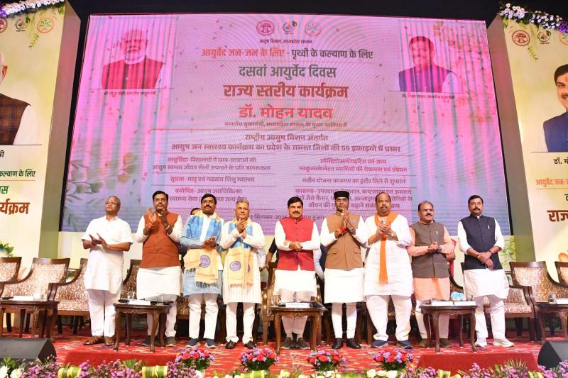 भोपाल। 10वें राष्ट्रीय आयुर्वेद दिवस पर मिन्टो हॉल, भोपाल में आयोजित राज्य स्तरीय कार्यक्रम आयुष चिकित्सा क्षेत्र के लिए ऐतिहासिक रहा। इस कार्यक्रम में मुख्य अतिथि के रूप में मध्यप्रदेश के मुख्यमंत्री *डॉ. मोहन यादव* शामिल हुए, जबकि अध्यक्षता *स्कूल शिक्षा मंत्री श्री इंदर सिंह परमार* ने की। कार्यक्रम में प्रमुख सचिव, अपर सचिव, आयुक्त तथा आयुष विभाग के वरिष्ठ अधिकारी भी उपस्थित रहे। कार्यक्रम के दौरान मुख्यमंत्री ने *राजपत्रित आयुष चिकित्सा अधिकारी संघ, मध्यप्रदेश* की सभी बहुप्रतीक्षित मांगों को पूरा करने की घोषणा की। इन घोषणाओं ने प्रदेशभर के आयुष चिकित्सकों में अभूतपूर्व उत्साह का संचार किया।