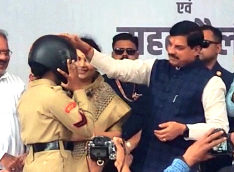 सीएम मोहन यादव ने खुद पहनाया हेलमेट और जनता को जागरूक किया