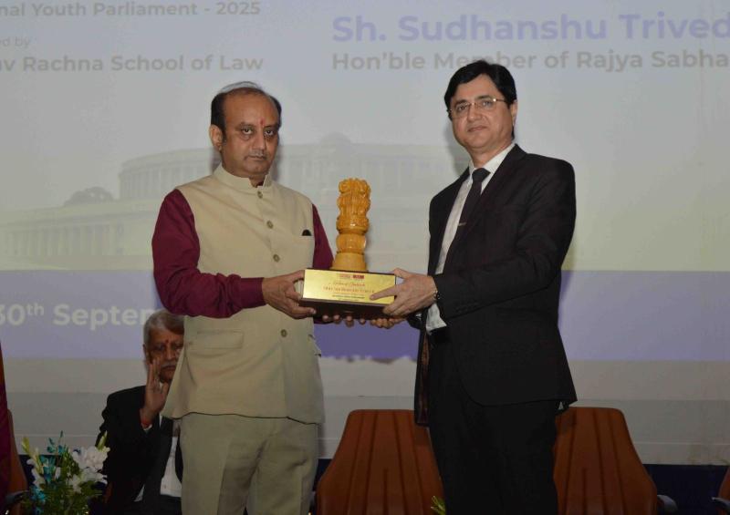 फरीदाबाद: राज्यसभा सदस्य और बीजेपी राष्ट्रीय प्रवक्ता डॉ. सुधांशु त्रिवेदी मानव रचना विश्वविद्यालय (MRU) के स्कूल ऑफ लॉ द्वारा आयोजित विद्हिवाद यूथ पार्लियामेंट में मुख्य अतिथि रहे। छात्रों को संबोधित करते हुए उन्होंने युवा पीढ़ी से आह्वान किया कि वे सूचित संवाद, नीतिनिर्माण और नेतृत्व पहलों में सक्रिय भागीदारी करें। उन्होंने उन्हें ‘भारत के लोकतांत्रिक भविष्य के संरक्षक’ बताया। यूथ पार्लियामेंट में लोक सभा जैसी समितियाँ शामिल थीं, जहां उन्होंने वक्फ़ (संशोधन) बिल, 2025 पर विचार-विमर्श किया, और ऑल इंडिया पॉलिटिकल पार्टी मीट, जिसने अमेरिका के पारस्परिक टैरिफ के जवाब में भारत की नीति पर चर्चा की। इन चर्चाओं के माध्यम से छात्रों को शासन के व्यावहारिक पहलुओं, जैसे रणनीतिक वार्ता, नीति निर्माण और वास्तविक विधायी चुनौतियों का अनुभव हुआ। प्रतिभागियों ने संसद सदस्य की भूमिकाएँ निभाते हुए प्रस्तावों पर विचार-विमर्श किया, सुझाव तैयार किए और अपने वक्तृत्व, नीति सोच और नेतृत्व कौशल का प्रदर्शन किया। अपने मुख्य भाषण में, डॉ. त्रिवेदी ने रेखांकित किया कि सुप्रीम कोर्ट ने एस.आर. बोम्मई केस जैसे मामलों के माध्यम से लोकतांत्रिक वैधता के सिद्धांतों को स्पष्ट किया है। इन निर्णयों में यह स्पष्ट किया गया है कि सरकार का अधिकार संसद के मंच पर निर्धारित होना चाहिए, बाहरी माध्यमों से नहीं। उन्होंने कहा कि नेतृत्व के कार्य भले ही भिन्न हों, लेकिन सरकार की स्थिरता यह साबित करने पर निर्भर करती है कि उसके पास संसद में बहुमत है, क्योंकि विधायी ढांचे के बाहर लिए गए निर्णय लोकतांत्रिक अखंडता को कमजोर कर सकते हैं। उन्होंने भारतीय दंड संहिता की औपनिवेशिक विरासत की ओर इशारा किया, जो नियंत्रण और दंड को प्राथमिकता देती थी। “आधुनिक भारत को सज़ा से आगे बढ़कर न्याय को मार्गदर्शक सिद्धांत के रूप में अपनाना होगा,” उन्होंने कहा और संसद की भूमिका को लोकतांत्रिक प्रणाली के विकास और विरासत में मिली औपनिवेशिक संरचनाओं के संतुलन में महत्वपूर्ण बताया। न्यायिक विकास पर बोलते हुए, डॉ. त्रिवेदी ने भूमि और होटल विवादों का उदाहरण दिया, जहां दशकों तक स्थिर निर्णय भारत के कानूनी विकास की क्रमिक प्रगति को दर्शाते हैं। “भारत में कानून स्थिर नहीं है; यह समय के साथ अनुकूलित और प्रगतिशील होता है,” उन्होंने कहा। वैश्विक संदर्भ में भारत की स्थिति बताते हुए उन्होंने कहा कि पश्चिमी देशों और चीन को जनसांख्यिकीय चुनौतियों का सामना है, जबकि भारत को दुनिया का सबसे बड़ा लोकतंत्र और सबसे युवा प्रमुख राष्ट्र होने का अनोखा लाभ प्राप्त है। “यह जनसांख्यिकीय लाभ हमारी ताकत है, लेकिन हमारी जिम्मेदारी भी। हमें अपने अतीत से प्रेर