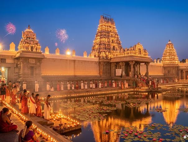 दिवाली पर उत्सव के दिन मां कामाक्षी की पालकी यात्रा निकाली जाती है और मां के दर्शन के लिए भक्त अपने घरों से निकलकर बाहर खड़े हो जाते हैं और मां से आशीर्वाद लेते हैं.