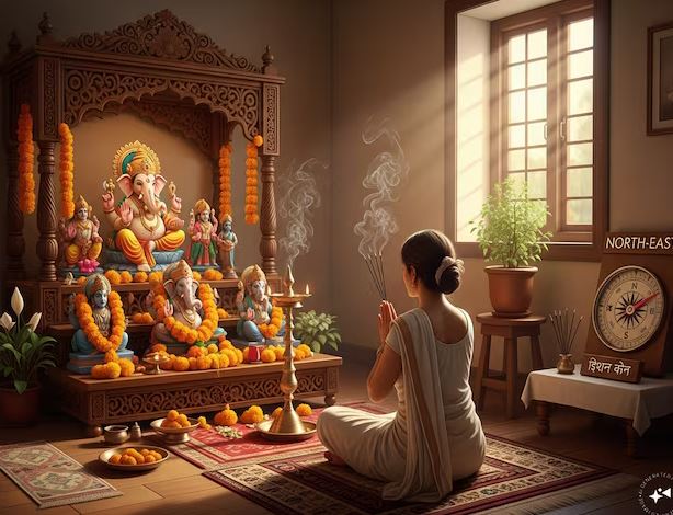1. ईशान कोण (North-East) – इसे सबसे शुभ दिशा माना जाता है पूजा-पाठ के लिए.