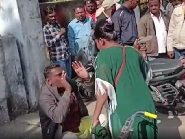 हाथ जोड़ता रहा युवक, चप्पल से वार करती दिखी महिला