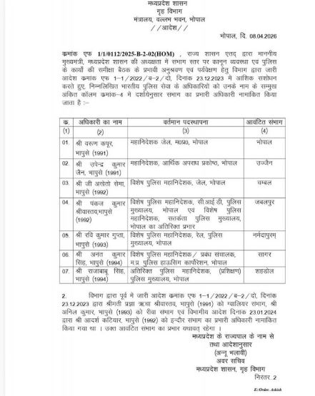संभागों की कमान बदली, IPS अधिकारियों की नई तैनाती