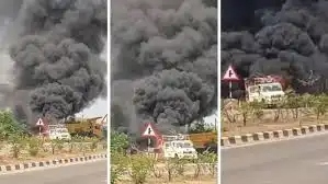 खबरों के अनुसार शहर के देवपुरी इलाके के पास रोड मार्किंग का काम चल रहा था. इसी दौरान मार्किंग करने वाली मशीन में अचानक आग लग गई. शुरूआत में तो आग मामूली समझ में आई लेकिन देखते ही देखते स्थिति गंभीर हो गई और आग तेजी से फैलने लगी. आग इतनी बढ़ गई कि आसमान में धुएं का गुबार नजर आने लगा|