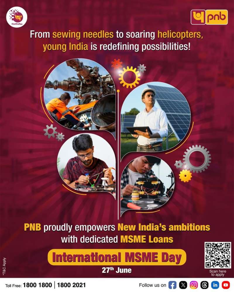 * पीएनबी ई-मुद्रा योजना: सीजीटीएमएसई द्वारा सुरक्षित तरुण प्लस योजना के अंतर्गत ₹20 लाख तक की ऋण सुविधा, जिसमें कई स्तरीय वित्तपोषण विकल्प शामिल हैं। इस अवसर पर अपने व्याख्यान में, पीएनबी के एमडी और सीईओ श्री अशोक चंद्र ने कहा कि "इस अंतर्राष्ट्रीय एमएसएमई दिवस, 27 जून, 2025 को, मैं आपको यह बताना चाहता हूँ कि सूक्ष्म, लघु और मध्यम उद्यम हमारी अर्थव्यवस्था को आगे बढ़ाने में महत्वपूर्ण भूमिका निभाते हैं। एमएसएमई नवाचार, रोजगार सृजन और सामुदायिक विकास की रीढ़ हैं, और इसके एक विश्वसनीय बैंकिंग पार्टनर के रूप में, इसकी सफलता को उड़ान देना हमारी नैतिक जिम्मेदारी है। " ग्राहक अपनी निकटतम पीएनबी शाखा में जाकर, पीएनबी वन ऐप का उपयोग करके या बैंक की समर्पित हेल्पलाइन पर संपर्क करके भी इन विशेष पेशकशों की जानकारी प्राप्त कर सकते हैं।