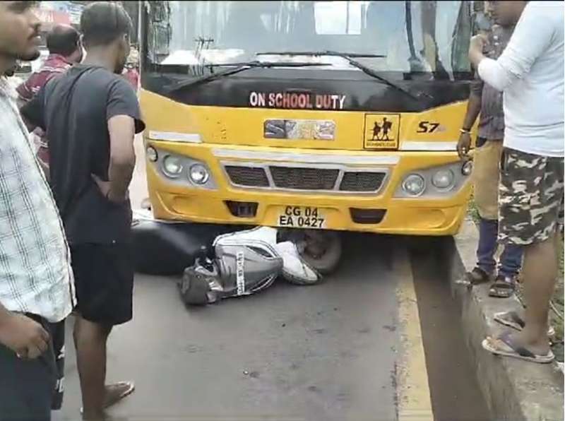 स्कूल बस और स्कूटी की टक्कर, महिला 50 मीटर तक घसीटी गई