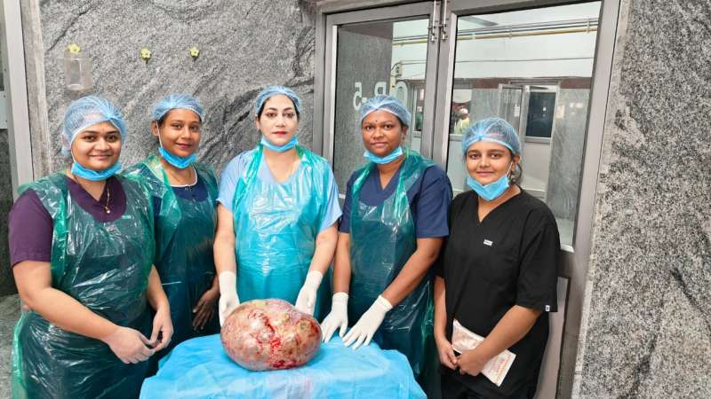 सिम्स के स्त्री एवं प्रसूति रोग विभाग में भर्ती हुई । सभी जरूरी जाँचो के बाद दिनाँक 18 मई 2024 को सिम्स मे जटिल आपरेशन करके महिला के पेट से 10 किलो वजन का ट्?यूमर निकाला गया जो उसके अंडाशय में था। आपरेशन स्त्री एवं प्रसूति रोग विभागाध्यक्ष डा. संगीता रमन जोगी द्वारा किया गया। उनकी टीम में डा. दुर्गा कौशिक, डा. सोमा बैंकट कोटा, डा. वर्णिका पाण्डेय, डा. प्राची तिवारी व अन्य डाक्टर शामिल थे। बेहोशी डॉक्टर राकेश निगम विभागाध्यक्ष ऐनेस्थिसिया और उनकी टीम द्वारा दी गयी। आपरेशन में स्टाफ नर्स दीपा एवं अन्य ओटी स्टाफ का विशेष योगदान रहा। मरीज का आपरेशन सफल रहा एवं वह सिम्स के स्त्री रोग विभाग में स्वास्थ लाभ ले रही है।