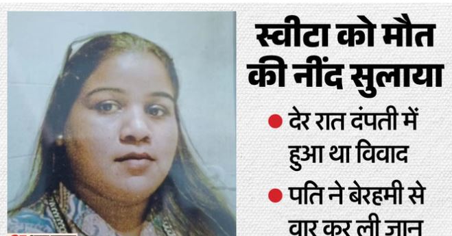 झूंसी (प्रयागराज)|यूपी के प्रयागराज के झूंसी थाना क्षेत्र स्थित कनिहार वार्ड के चमनगंज इलाके में बुधवार रात पारिवारिक विवाद में पति हेमंत कुमार वर्मा ने पत्नी स्वीटा (40) के सिर पर लोहे की प्रेस से वार कर हत्या कर दी। रात भर बगल के कमरे में सोता रहा। बृहस्पतिवार सुबह खुद आरोपी ने पुलिस कंट्रोल रूम में फोन कर सूचना दी कि उसने अपनी पत्नी को मार डाला है, उसे गिरफ्तार कर लिया जाए। पुलिस ने आरोपी को गिरफ्तार कर शव को पोस्टमार्टम के लिए भेजा।फतेहपुर का मूल निवासी 42 वर्षीय हेमंत वर्मा तीन दशक से चमनगंज इलाके में परिवार के साथ रह रहा था। उसकी आवास विकास कॉलोनी योजना-तीन स्थित बिजली उपकेंद्र के पास बैग रिपेयरिंग की दुकान है। यहां वह अपनी मां मुन्नी देवी के साथ बैठता था।हेमंत का विवाह 12 नवंबर 2021 को पंजाब के गुरुदासपुर शहर के मॉडल टाउन धारीवाल निवासी बशीर मसीह की बेटी स्वीटा से हुआ था। विवाह के कुछ दिन बाद से ही दोनों में अनबन शुरू हो गई। इससे परेशान होकर आरोपी की मां मुन्नी देवी और बहन गौरी मकान की दूसरी मंजिल पर अलग रहने लगीं।इनकी रसोई भी ऊपर ही थी, जबकि हेमंत पत्नी स्वीटा और तीन साल की बेटी एस्टर्ड वर्मा के साध मकान के निचले हिस्से में रहता था। पुलिस के मुताबिक, देर रात दंपती में विवाद हुआ। बात इतनी आगे बढ़ी कि मारपीट के दौरान हेमंत ने गुस्से में स्वीटा के सिर पर लोहे की प्रेस से कई वार कर दिए। इससे वह लहूलुहान होकर गिर पड़ी। कुछ देर बाद उसकी मौके पर ही मौत हो गई सुबह करीब 10 बजे झुंसी पुलिस मौके पर पहुंची। फोरेंसिक टीम बुलाई गई। एसओ झुंसी महेश मिश्र ने बताया कि घटना की जानकारी महिला के परिजनों को फोन पर दे दी गई है। उनके आने के बाद आरोपी पति के खिलाफ प्राथमिकी दर्ज की जाएगी। आरोपी को गिरफ्तार कर लिया गया है।कुष्ठ रोग की वजह से नहीं हो रहा था विवाह, धर्म बदला, मेट्रोमोनियल साइट के जरिये हुआ रिश्त हेमंत कुष्ठ रोग से ग्रसित है। इसके कारण उसका विवाह नहीं हो रहा था। इसी वजह से वर्ष 2020 के आसपास धर्म बदलकर वह हिंदू से ईसाई बन गया। 2021 में मेट्रोमोनियल साइट के जरिये स्वीटा से विवाह किया।एसओ ने बताया कि पुलिस जब मौके पर पहुंची तो वह शव के पास बेटी के साथ बैठा था। उसका कहना था कि वह रोज-रोज के झगड़े से तंग आ चुका था। पुलिस ने मौके से हत्या में प्रयुक्त लोहे का प्रेस कब्जे में ले लिया।