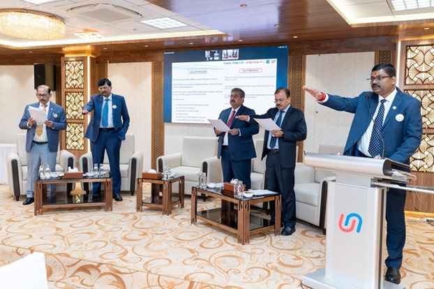 बैंक के प्रबंध निदेशक एवं सीईओ श्री आशीष पाण्डेय द्वारा आज बैंक के केंद्रीय कार्यालय में कार्यपालक निदेशकों, मुख्य सतर्कता अधिकारी और वरिष्ठ कार्यपालकों की उपस्थिति में सत्यनिष्ठा शपथ ली गई और ईमानदारी एवं सत्यनिष्ठा के उच्चतम मानकों को बनाए रखने की प्रतिबद्धता व्यक्त की गई. देश भर के सभी क्षेत्रीय कार्यपालक भी शपथ लेने के लिए वर्चुअल माध्यम से जुड़े.