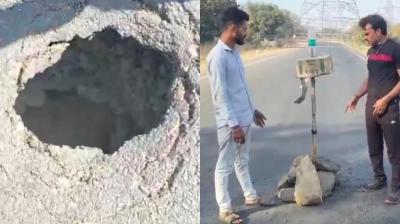 सीधी: अमिलई गांव में एनएच-39 मुख्य मार्ग पर सड़क धंस गई है. सड़क के बीच बना यह गहरा गड्ढा हादसे का कारण बन रहा है. बीते 2 दिनों के भीतर यहां...